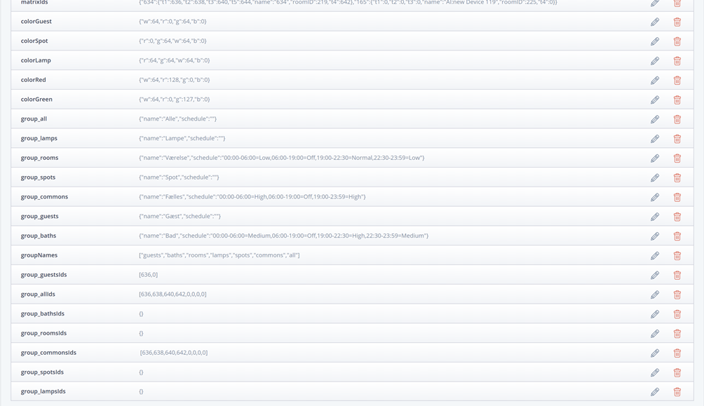 GroupNames er de grupper man ønsker. Default er defineret følgende: guests, baths, rooms, lamps, spots, commons og all. Man kan selv tilføje flere, ved at følge syntaxen.
