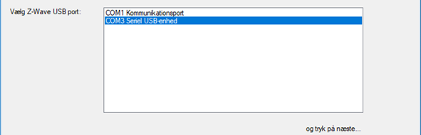 1. Vælg hvilken COM port som USB enheden sidder på. Her er port 3 valgt